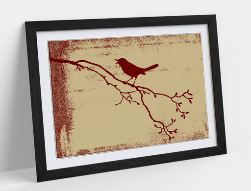 Framed Bird Wall Art – Red Silhouette Tree Branch Print | Handmade Home Decor