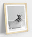 This tiger wall art is a striking black and white poster that brings unique animal artwork into your bathroom wall decor. Handmade UK art printed on heavy matte paper with archival ink print ensures lasting quality and vivid detail. The framed wall print features a woodgrain frame design that is 30mm wide and 15mm deep, providing a stylish yet subtle border to complement your space. Ready to hang poster comes fitted with crystal clear perspex for protection and an MDF back, making installation simple and secure. This tiger bathtub art print brightens any room while offering a decorative animal print that appeals to wildlife enthusiasts and modern home decorators alike.