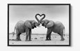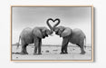 Canvas Wall Art - Black White Elephants Love Heart Float Effect Print
