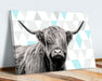 Canvas Wall Art - Highland Cow Turquoise Grey Modern Canvas Print Ready To Hang
