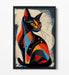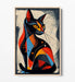Float Effect Canvas Art - Blue Red Abstract Cat Print | Premium Varnish Finish