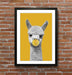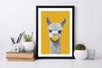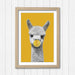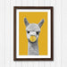 Framed Poster Wall Art – Happy Alpaca Print With Mustard Yellow Decor & Woodgrain Frame