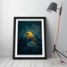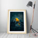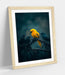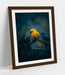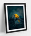 Framed Wall Art Poster - Yellow Bird & Black Crow Tree Print With Wood Grain Frame