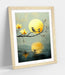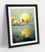 Framed Wall Art - Pretty Birds Perched on Tree Over Water Scene Artwork Print