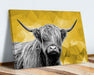 Highland Cow Canvas Art – Black White Canvas Wall Art With Yellow Geo Artwork