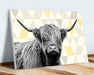 Highland Cow Canvas | Geometric Wall Art Print - Yellow Grey Artwork, Ready to Hang