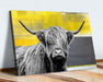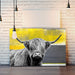 Highland Cow Canvas – Yellow Grey Abstract Animal Wall Art Print | Premium Canvas