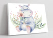 Watercolour Hippo Canvas - Cute Floral Nursery Wall Art With Vibrant Colors