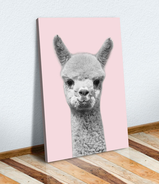 Baby Alpaca Wall Art - Handmade Black White Pink Canvas Print with Satin Finish