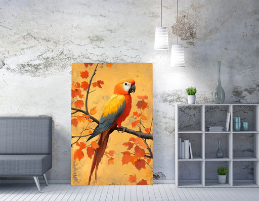 View full detailsThe orange parrot canvas art is a vibrant bird wall print designed to bring colorful tropical bird painting charm and autumn tree decor into your l...