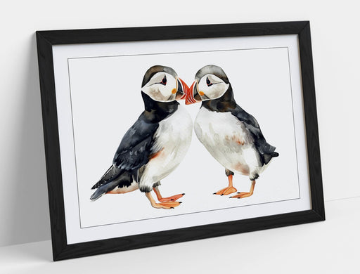 Puffins Wall Art – Framed Bird Poster | Cute Animal Print Home Decor