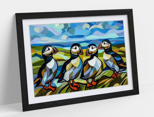 Framed Wall Art | Group of Puffins Seaside Coastal Home Decor Poster Print