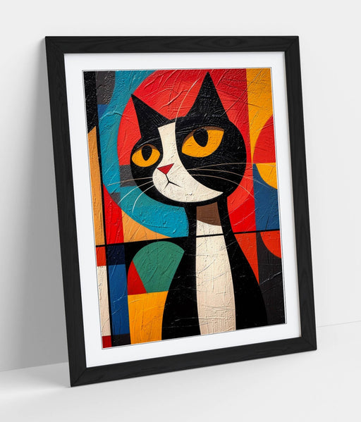 Black Cat Wall Art - Framed Abstract Home Decor Poster Print | UK Handmade