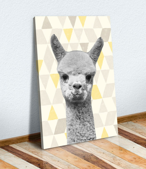 View full detailsThis canvas wall art features a striking Baby Alpaca geometric print in black, white, and mustard yellow, designed to elevate your modern wall deco...