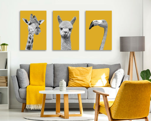 View full detailsThis canvas wall art set features a striking giraffe canvas print that combines black white wall decor with mustard yellow artwork accents to brigh...