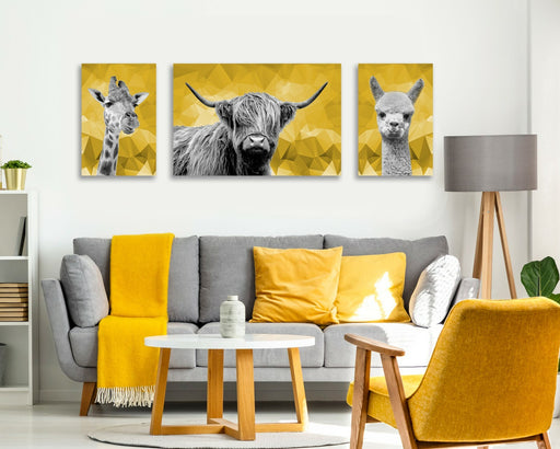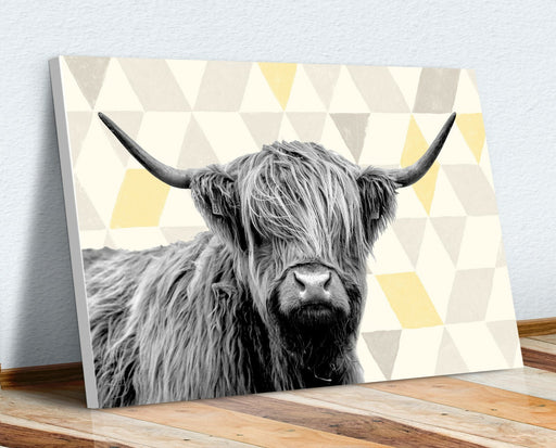 View full detailsThis highland cow canvas art brings a striking blend of black white canvas tones and bold yellow geo artwork to your space, delivering a captivatin...