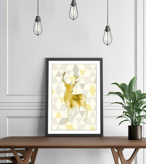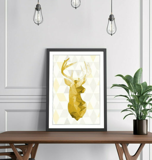 View full detailsThis framed wall art print features a striking mustard yellow geometric stag head artwork designed to elevate your home or office with modern anima...
