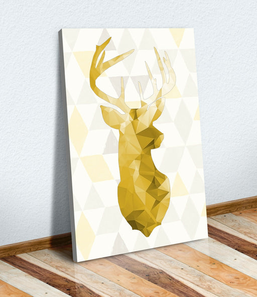 View full detailsThe stag head canvas art is a striking geometric wall print designed to bring modern animal print style and vibrant yellow mustard decor to your ho...