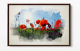 Float Effect Canvas Art - Poppy Field Landscape Watercolour Print On 30mm Deep Frame