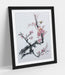 Framed Wall Art - Asian Tree Blossom Print With Woodgrain Frame Design