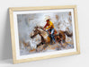 Cowboy Riding Horse Art – Framed Wall Art With Woodgrain Frame & Matte Finish Poster