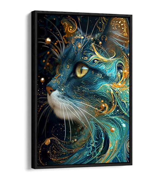 View full detailsThis handmade canvas wall art features a striking blue gold cat design with a unique float effect canvas that adds depth and elegance to any room. ...