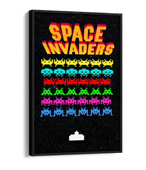 Space Invaders Canvas Retro Arcade Art - Float Effect Frame 30mm Deep Canvas Wall Print
