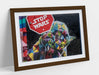This framed poster art features iconic Yoda wall decor with a woodgrain frame finish, designed to bring modern pop art style and decorative wall picture appeal to any room. Handmade in the UK, this ready to hang art piece uses archival ink print on heavy matte paper to ensure vibrant colors and long-lasting quality. The framed picture print measures precisely with a 30mm wide and 15mm deep faux woodgrain frame, providing a sturdy yet stylish border that complements the Red Blue poster tones perfectly.