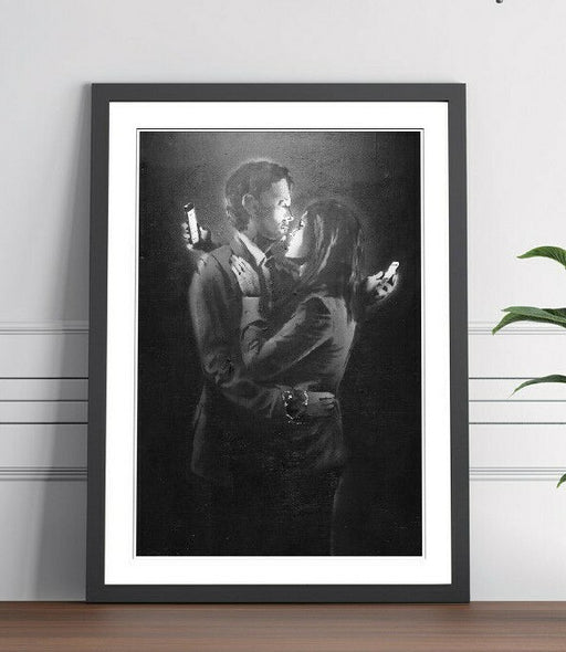 Banksy Framed Poster – Mobile Lovers Artwork | Urban Street Art Print | Ready To Hang Frame
