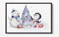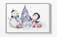 Christmas Canvas Wall Art – Watercolour Penguin & Snowman Float Effect Print